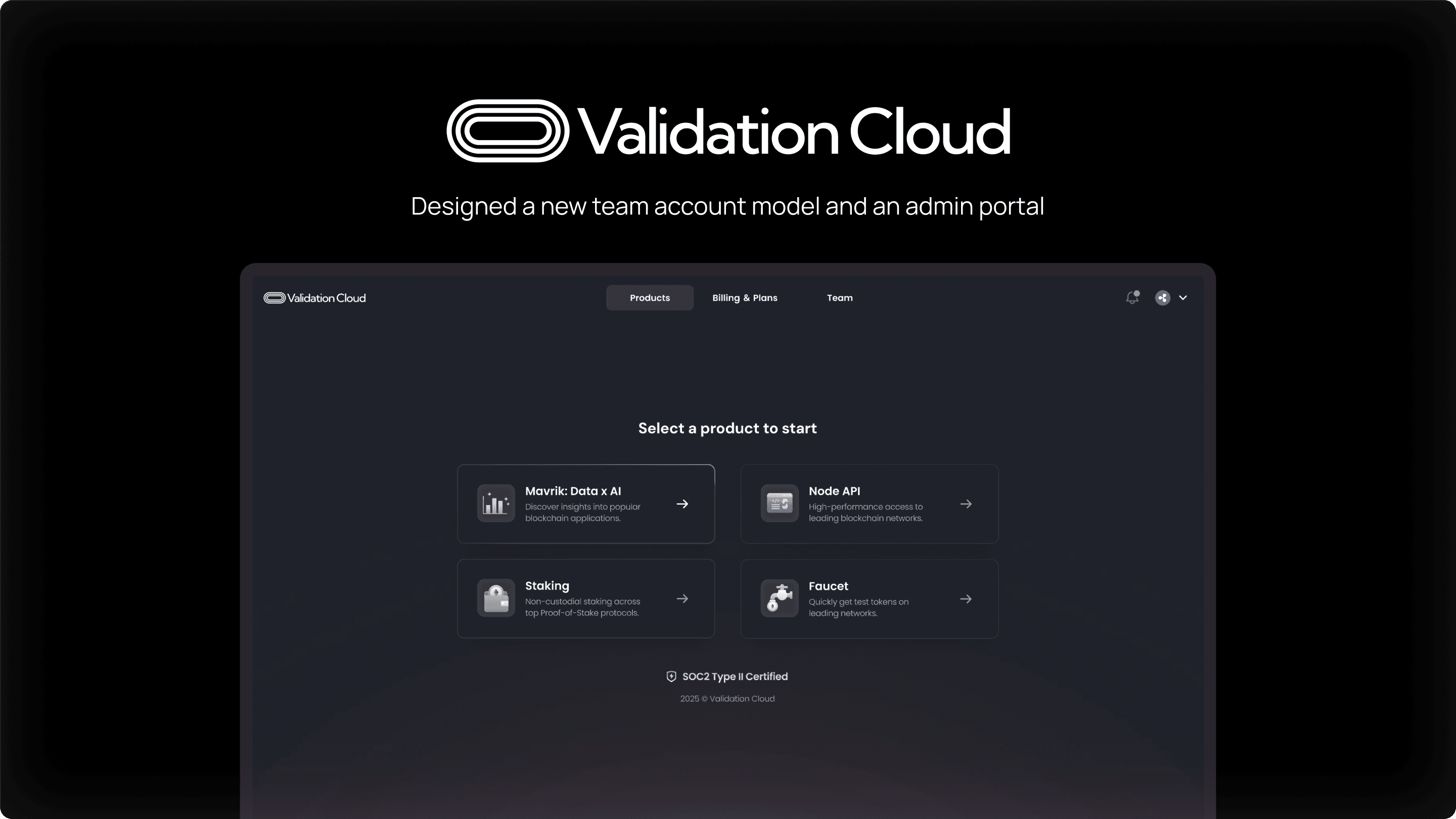 Designed a new team account & admin portal so enterprise customers can share one Validation Cloud account, manage roles, and centralize billing.