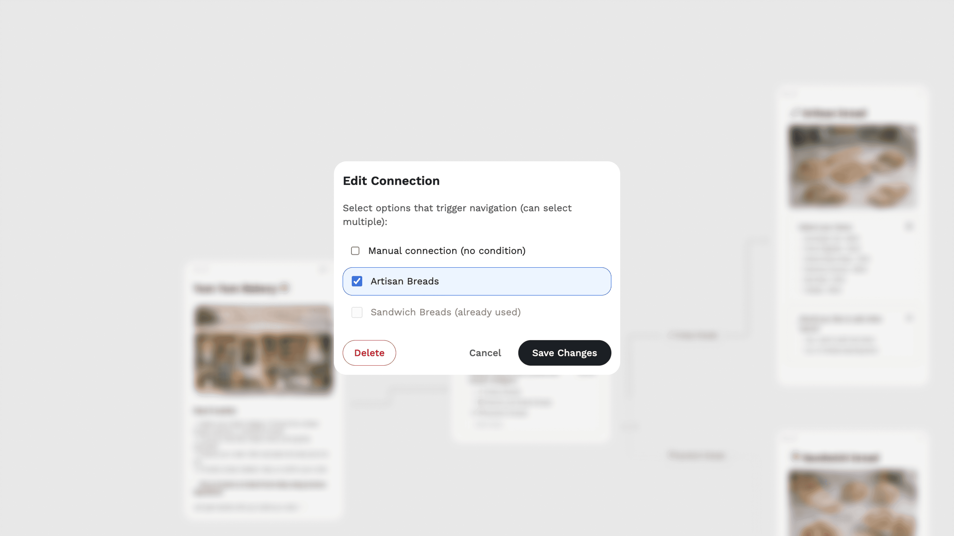 This was the core interaction design challenge of the whole product: how to make something as abstract as conditional logic feel physical and visual. The line was the answer.