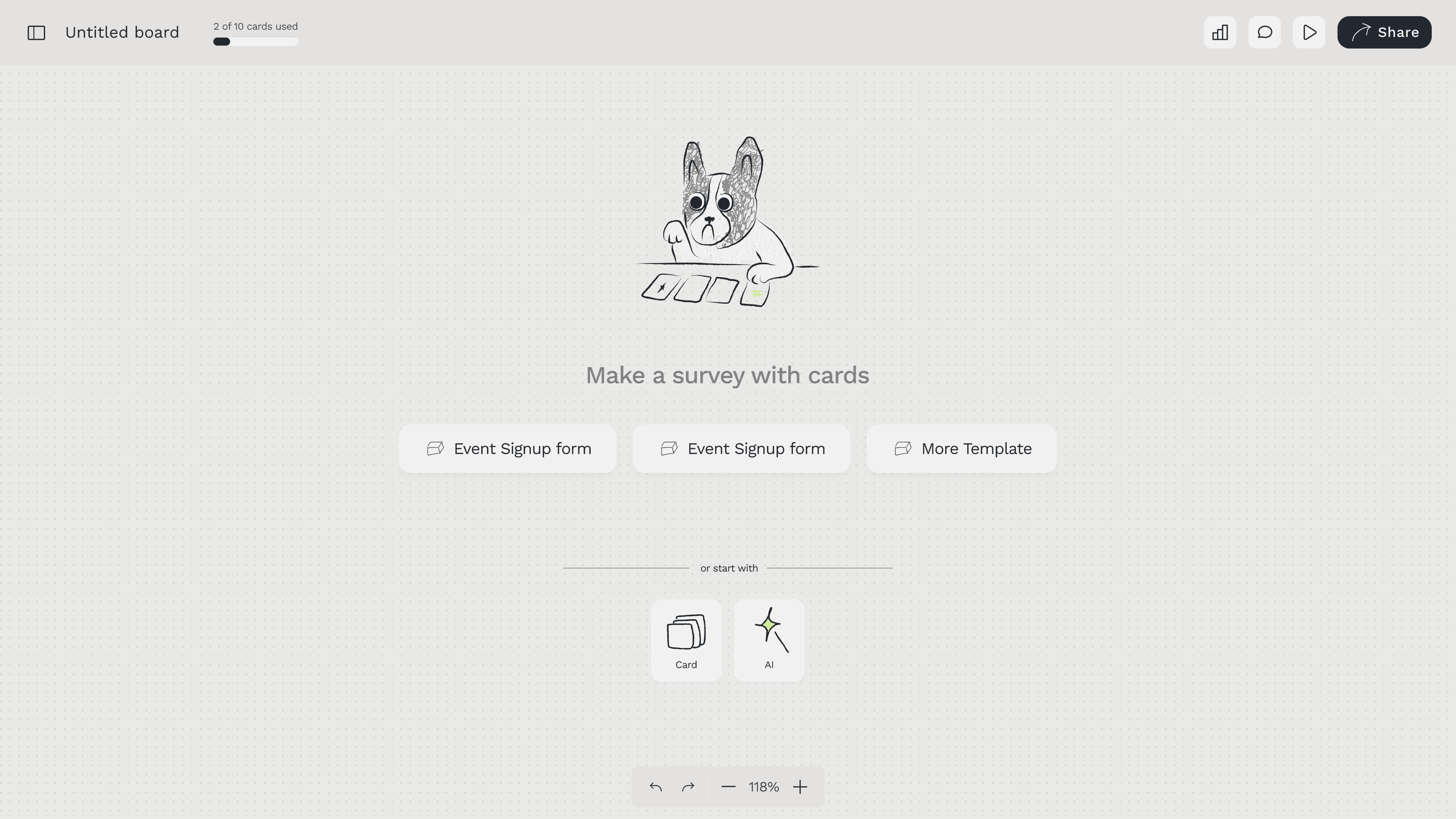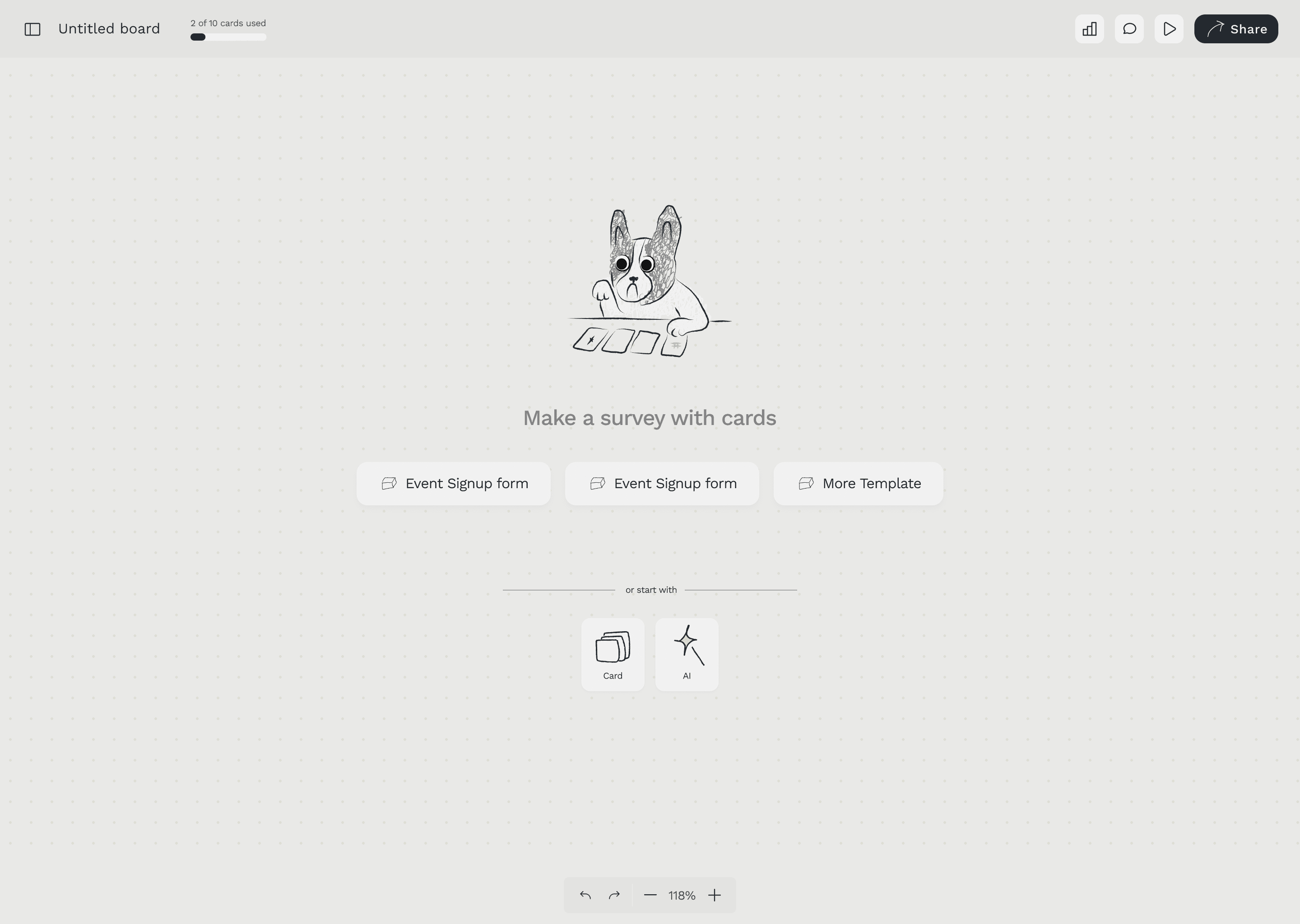 The core interaction — drawing lines to define logic — consistently resonated with users who saw it. The brand identity, especially the dog mascot, gave CardTie a personality that stood out in a category full of generic SaaS tools. The website hero communicated the product concept without requiring the user to read documentation.