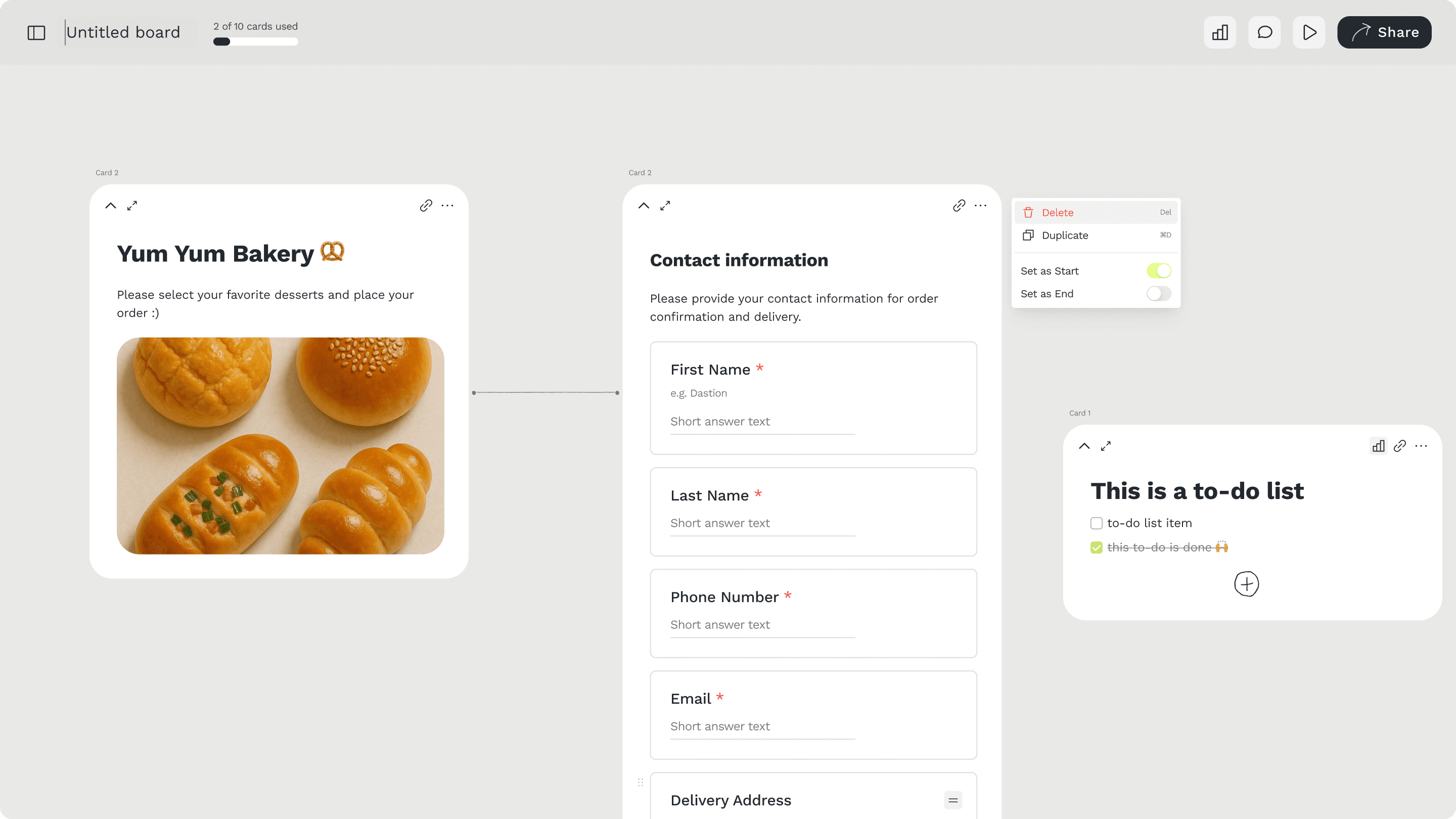 We going back to let user starts everything from a blank space, where users drop cards, connect them,