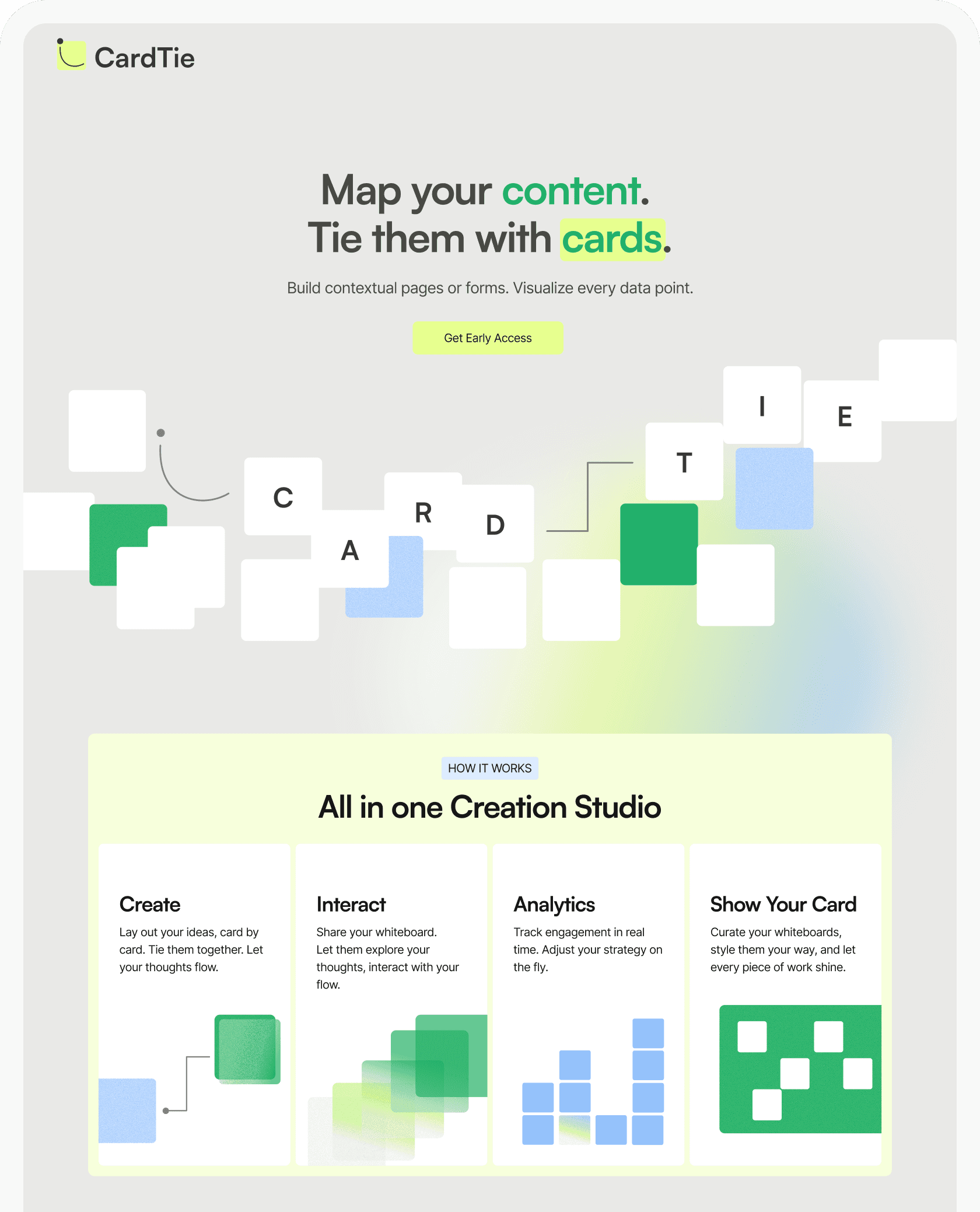So we imagined each thought as a card — something you can move, link, and reassemble. That became the foundation of CardTie’s experience: thinking in cards.