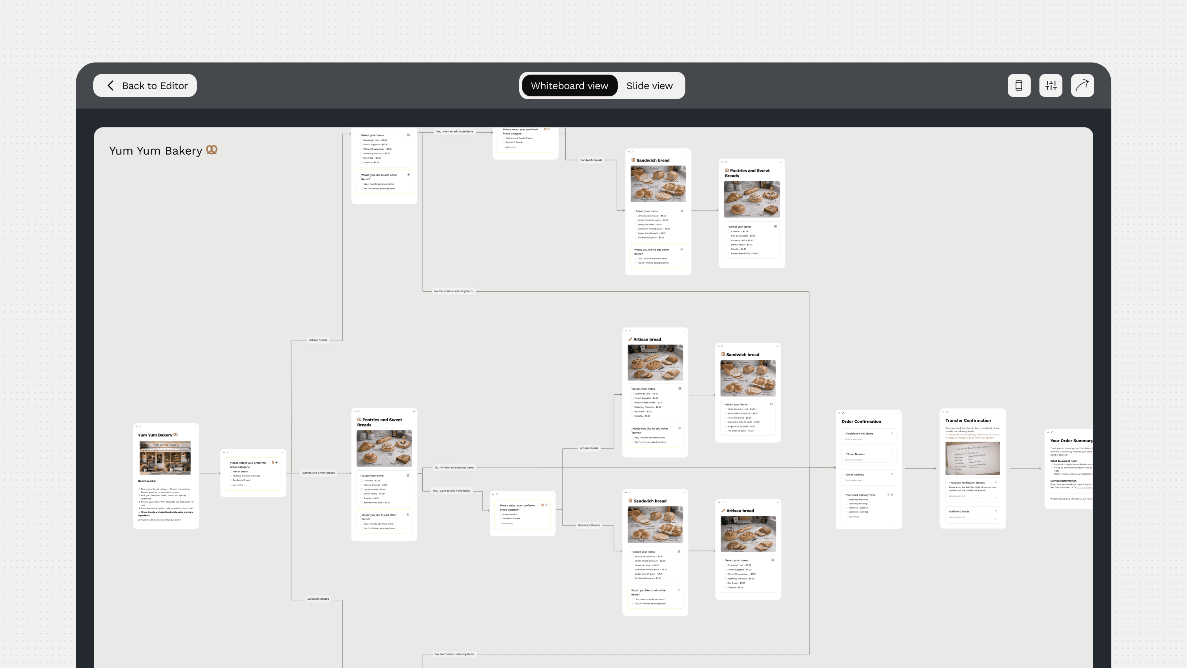 Every form builder gives you the same thing: a list of questions, a stack of dropdowns, and branching conditions buried three menus deep. Build something complex enough — a multi-step survey, a conditional order form, an interactive quiz — and you'll find yourself hunting through nested settings just to understand what you built.