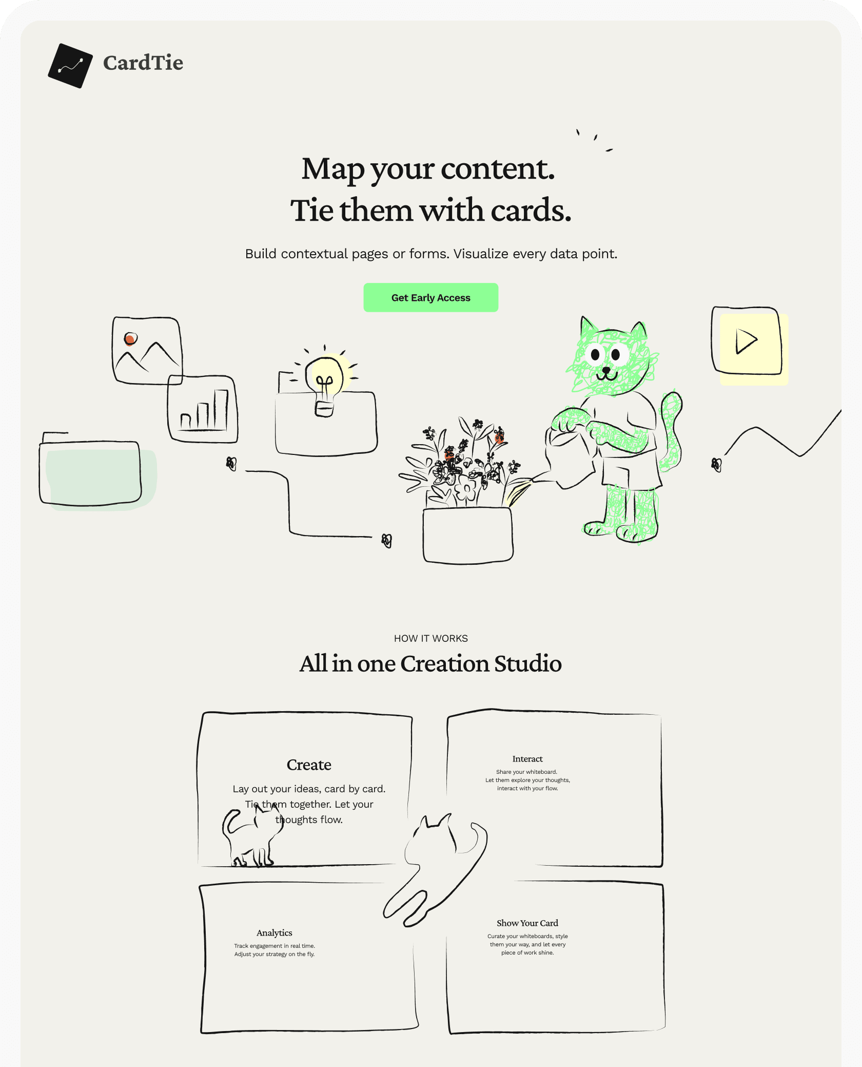 CardTie starts with creation on a visual canvas. AI unfolds your ideas into connected cards, helping you map concepts with clarity. Your thoughts become structured, fluid, and instantly understandable.