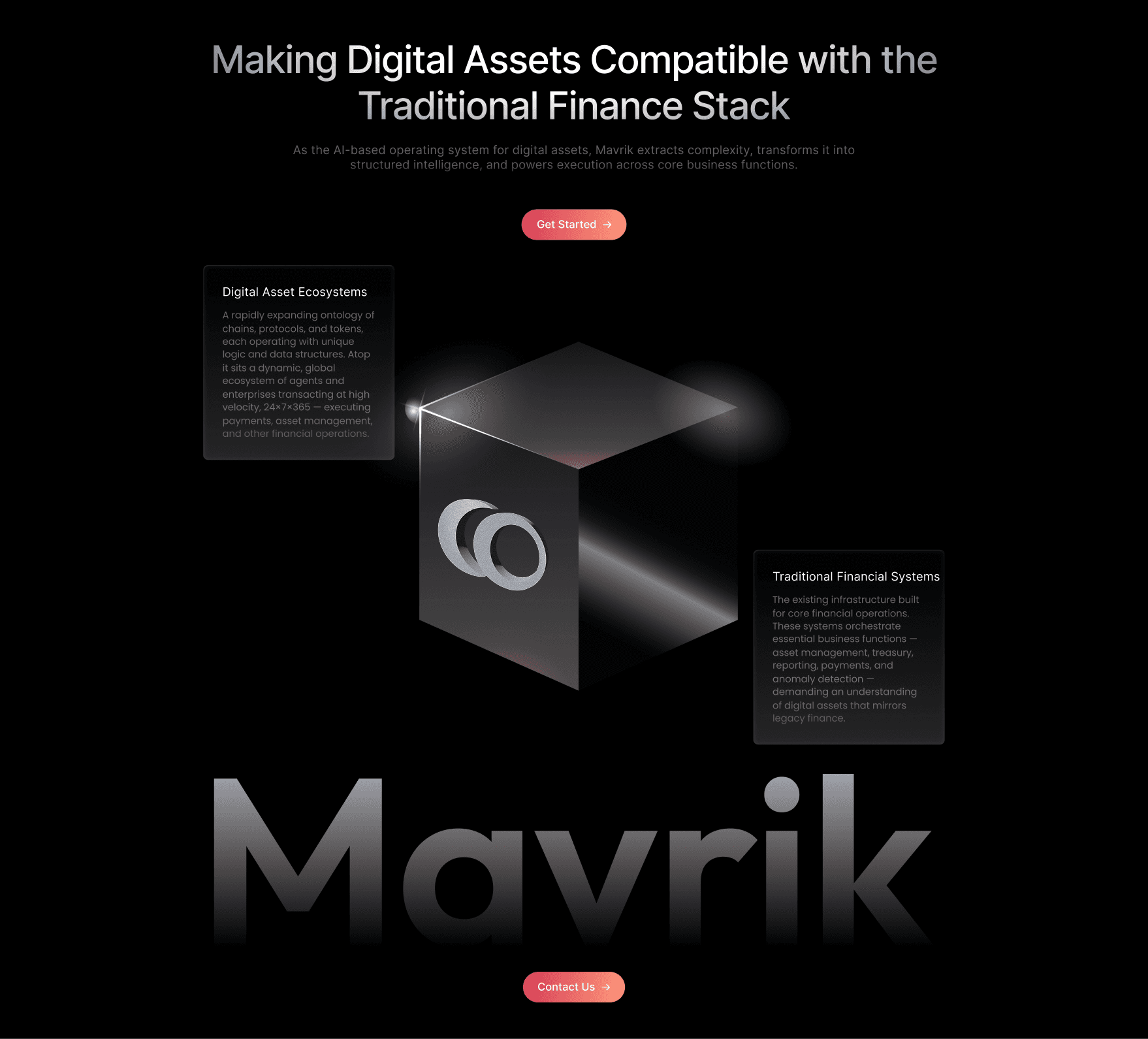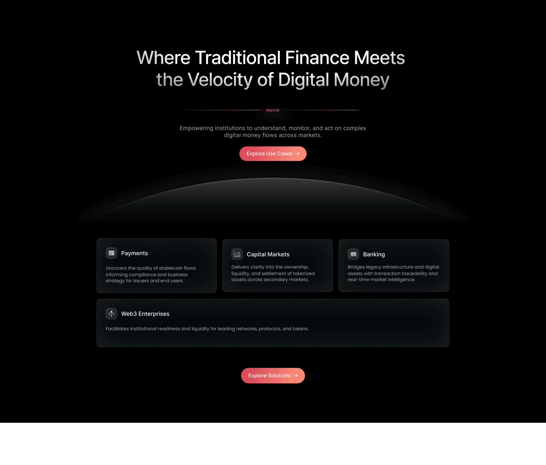 We highlighted four key segments: payments, capital markets, banking and web3 enterprises — helping visitors instantly recognize whether Mavrik is relevant to them.