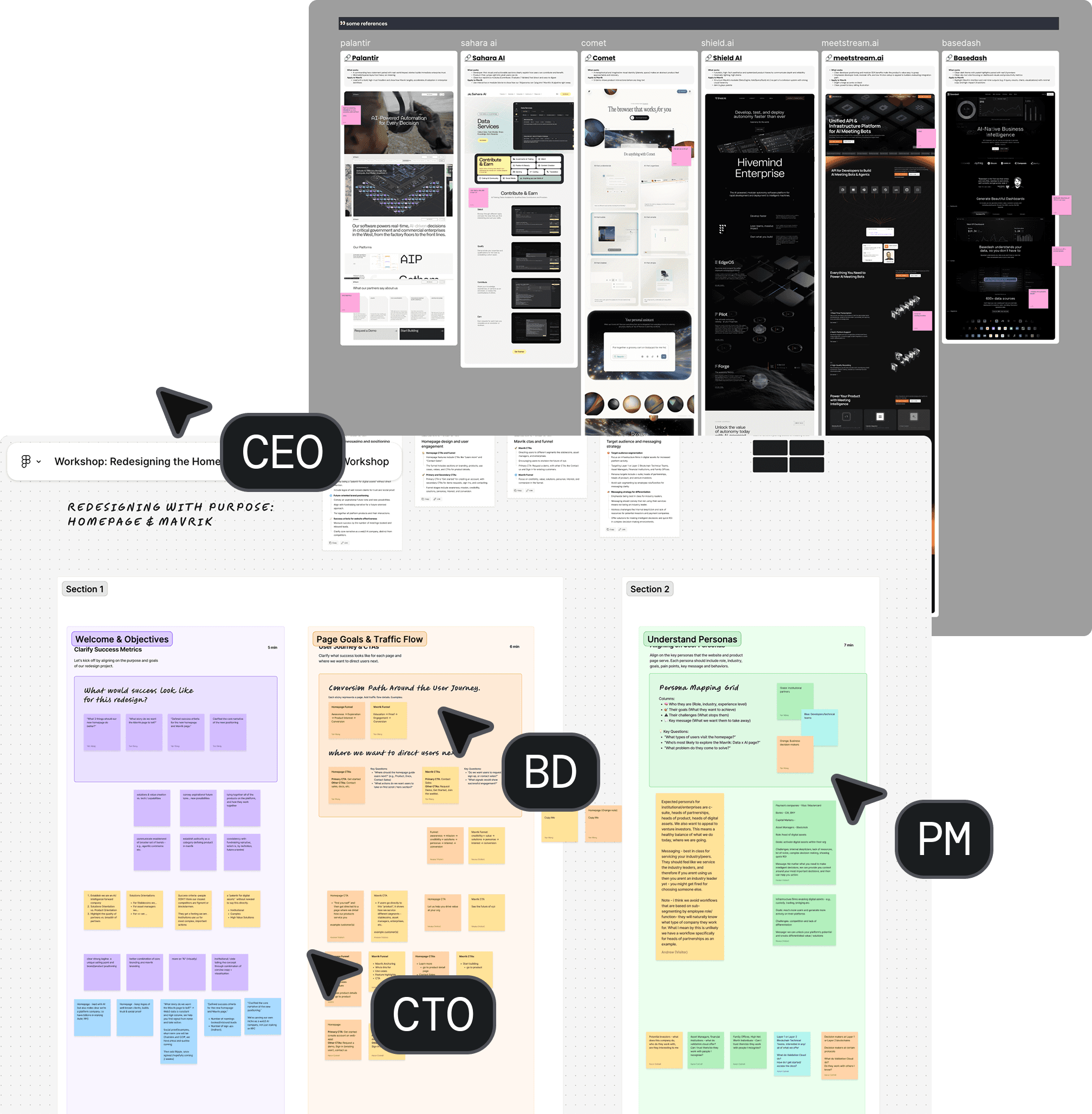 Before jumping into visuals, we ran a stakeholder workshop to align the story. We brought in the C-levels, BD team, designers, and PMs, and asked key questions:
