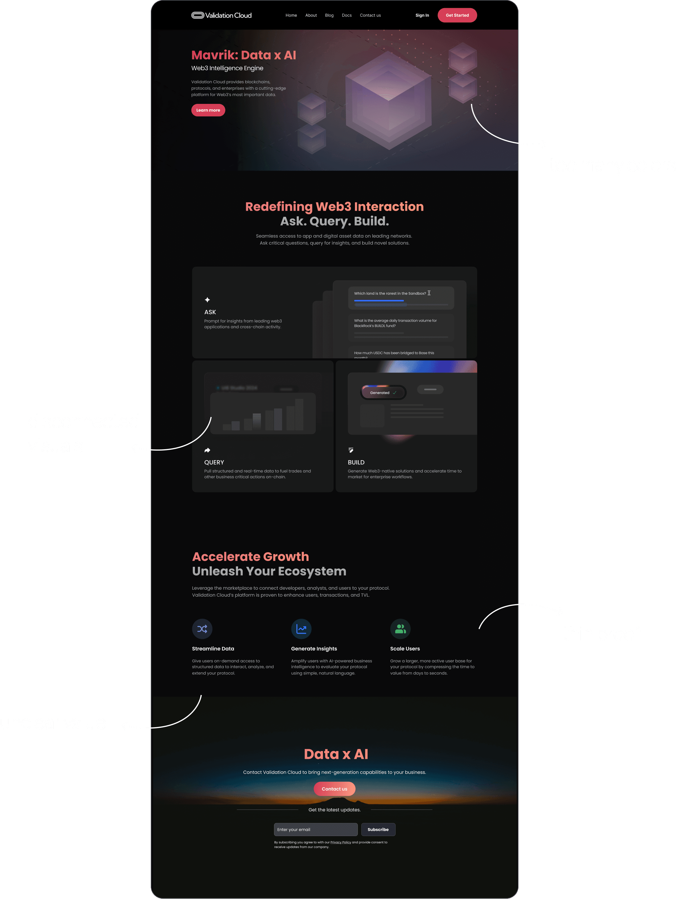 Redesigned Validation Cloud’s marketing site to better align the company’s identity with our new AI product, Mavrik.